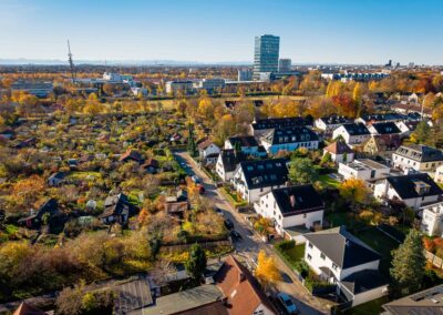 Kindergärten, Grundschulen sowie weiterführende Schulen (z. B. Grund- und Mittelschule an der Stuntzstraße, Wilhelm‑Hausenstein‑Gymnasium) sind gut mit dem Fahrrad oder öffentlichen Verkehrsmitteln erreichbar. Die Anbindung an den ÖPNV ist ideal: Die Buslinien X, 183 und 189 verkehren in unmittelbarer Nähe, der S‑Bahnhof Englschalking (S8) ist in etwa 5 Minuten mit dem Rad erreichbar und bietet direkte Verbindungen ins Stadtzentrum sowie zum Flughafen. Die Lage an den nahen Autobahnanschlüssen A94/A99 macht dieses Grundstück auch für Pendler attraktiv
