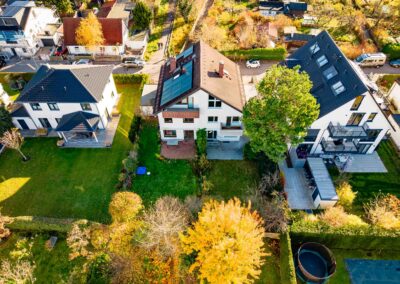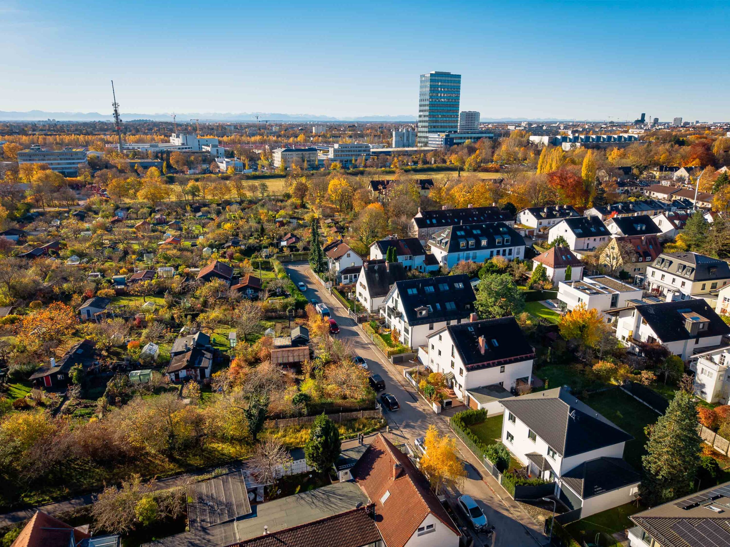 Die Doppelhaushälfte befindet sich in der Dominikstraße 15, 81929 München, im beliebten und sehr ruhigen Stadtteil Bogenhausen‑Zamdorf. Die Straße endet an einer gepflegten Kleingartenanlage, was für besonders naturnahe Wohnqualität sorgt. Ein Highlight der unmittelbaren Umgebung ist der namensgebende Zamilapark – eine großzügige, parkähnliche Siedlung mit Grünhöfen, Spielplätzen, einem See zum Eislaufen sowie Sportflächen, eingebettet in den Denninger Anger