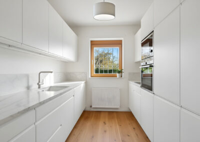 Diese gut geschnittene Doppelhaushälfte aus dem Baujahr 1984 bietet auf ca. 140 m² Wohnfläche und drei Etagen ein großzügiges und familienfreundliches zu Hause. Das Haus liegt in einer ruhigen Wohngegend mitten in Bogenhausen – direkt gegenüber einer gepflegten Kleingartenanlage und besticht durch seine durchdachte Raumaufteilung sowie den grün-eingewachsenen Garten mit Westausrichtung. Dank des ausgebauten Dachstuhls, zwei Vollbädern, einem modernisierten Gäste-WC sowie einer voll unterkellerten Fläche mit hoher Deckenhöhe erfüllt die Immobilie alle Anforderungen an Wohnen mit genügend Platz für die ganze Familie.